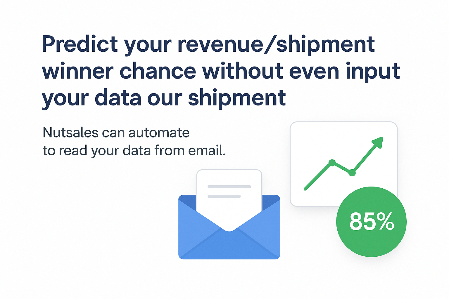 Nutsales' AI-enhanced shipment input and tracking automates the capture of shipment details from emails and documents, eliminating manual data entry. It continuously monitors shipment progress, providing real-time updates and predictive insights to help teams stay on top of every delivery with greater speed, accuracy, and efficiency.